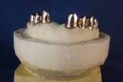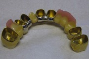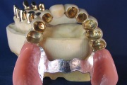 Bei Teleskopprothesen handelt es sich um eine der bestmöglichen Prothesenarten. Zu diesem Zweck werden auf einigen, oder aber auch auf allen verbliebenen Zähne spezielle Kronen aus Metall, in der Regel aus Gold befestigt - die sogenannten Teleskop- oder Konuskronen. In der Prothese befindet sich nun das entsprechende Gegenstück. Die Prothese wird nun auf die Zähne gesetzt in passt im wahrsten Sinne des Wortes wie angegossen.